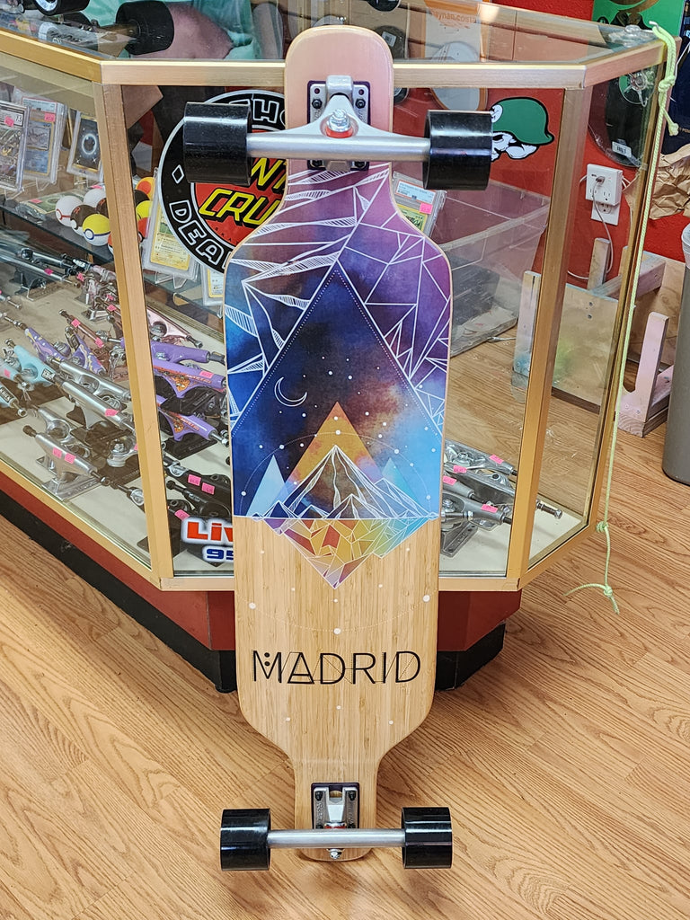 Complete comes built with Cadillac 180mm 50 degree Trucks, Cadillac Chasers Black and clear grip.